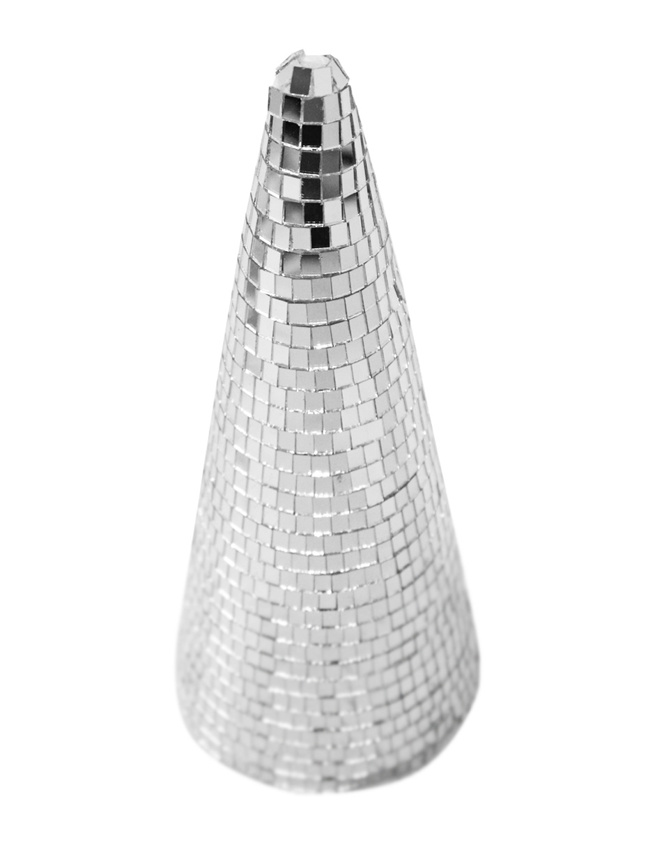 Figura de pino con un diseño de disco balls. Es perfecto para añadir un toque de brillo y diversión a tu decoración navideña, creando un ambiente de fiesta. Mide 10x24cm.