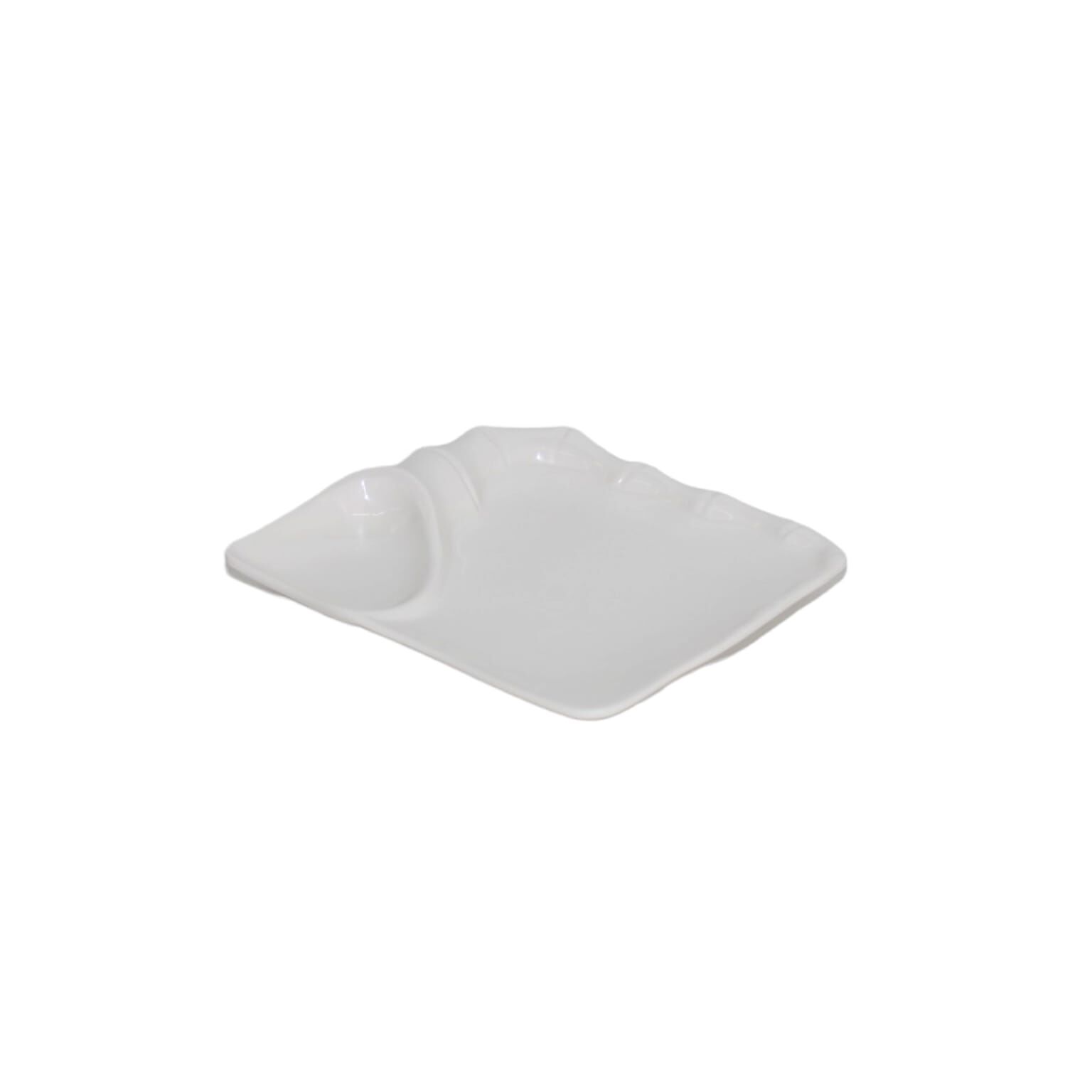 Simplifica tu servicio con la máxima funcionalidad y un diseño inteligente gracias a este versátil plato de melamina. Su diseño moderno y minimalista incorpora una práctica hendidura para el aderezo, ideal para servir con estilo sushi, gyozas, crudités o cualquier aperitivo que requiera su propia salsa. Inyecta practicidad, orden y sofisticación a cualquier reunión o mesa individual. Material: Melamina. Medidas: 21.3 x 20.5 x 3.4 cm.
