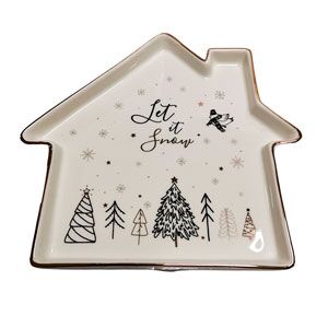 Plato de ceramica en forma de casa con estampado árbol navideño