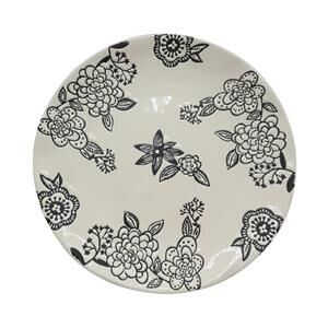 Plato de cerámica beige pintado con flores negras de 26.5×26.5×2.5cm