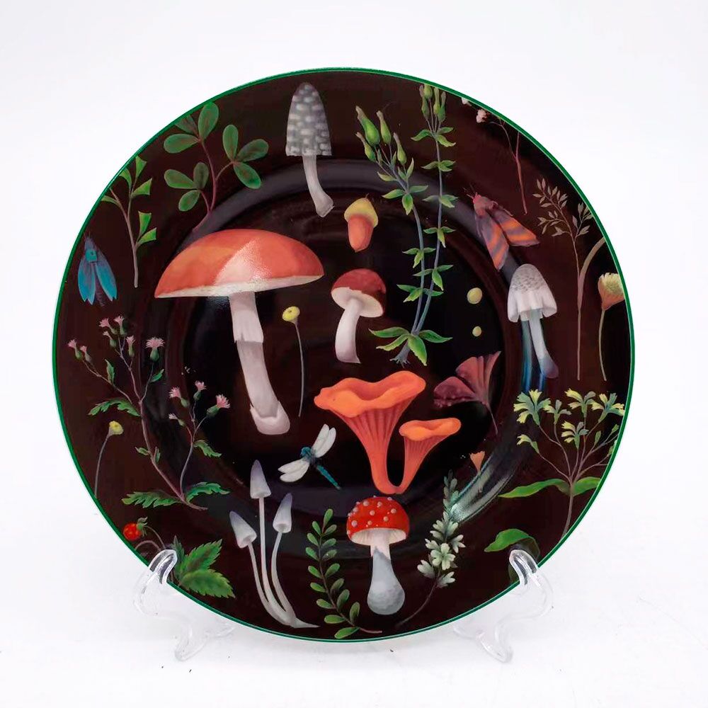 Plato que te invita a una experiencia mística y elegante, inspirada en la naturaleza. Su diseño presenta un cautivador estampado de hongos en tonos oscuros que evoca la profundidad de un bosque mágico. Fabricado en cerámica, esta pieza es perfecta para cenas con un estilo único y sofisticado. Medidas: 27 cm (diámetro).