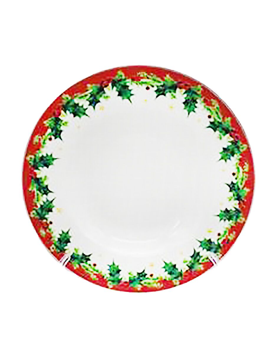 Plato de ceramica hondo blanco con orilla roja con muerdago de 22cm
