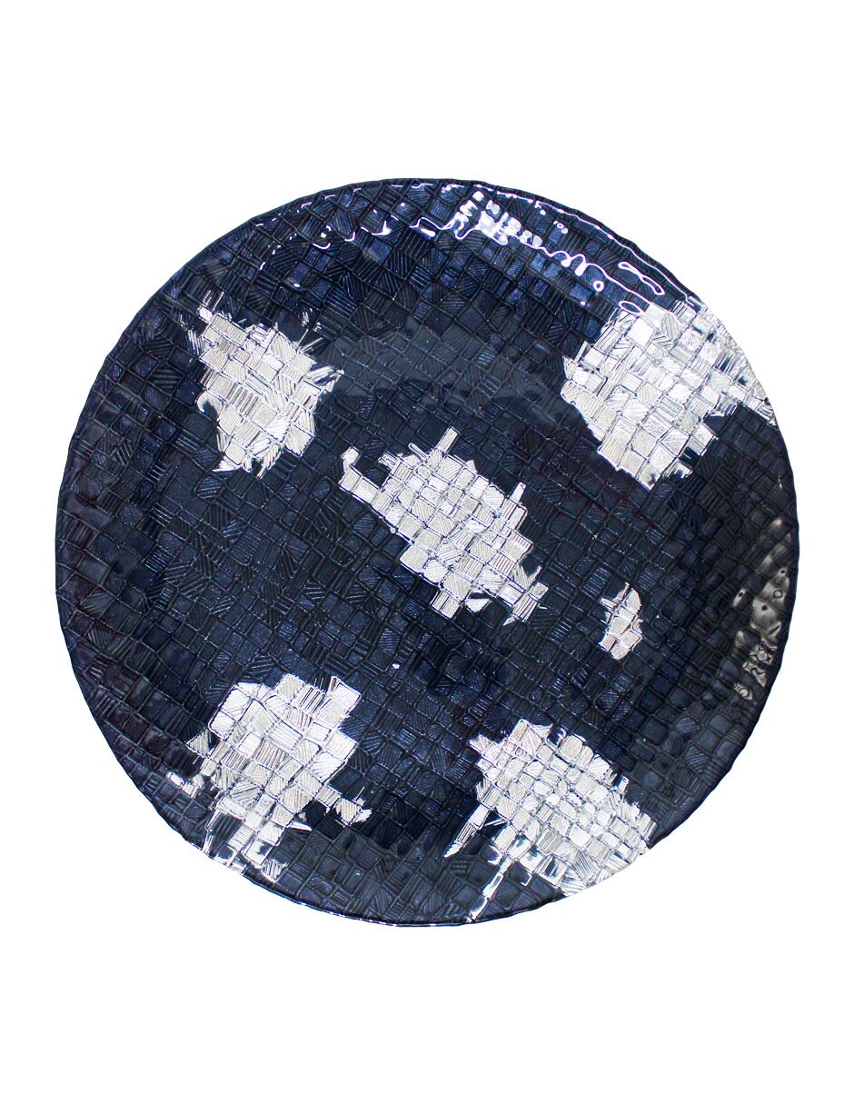 Este distinguido plato de presentación irradia elegancia moderna, distinción y una textura cautivadora. La textura tejida en color azul marino con detalles en plata crea un contraste visual sofisticado y profundo. Es la base ideal para cenas formales y mesas que buscan un toque de diseño contemporáneo. Material: Vidrio. Medidas: 32 cm (diámetro).