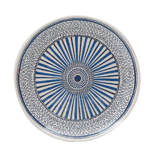 Plato de melamina azul con líneas de 23x23x1.5cm