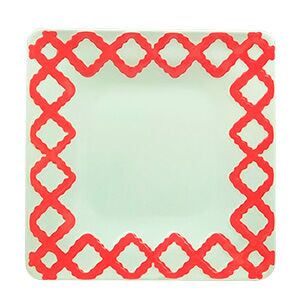 Este cautivador plato de servicio irradia calidez, diseño moderno y una frescura geométrica. Su forma cuadrada ofrece un marco contemporáneo, mientras que el patrón de celosía y el vibrante color rojo añaden una textura visual dinámica y optimista. Es ideal para servir entradas o postres con un estilo moderno, lleno de energía y distinción. Material: Melamina.