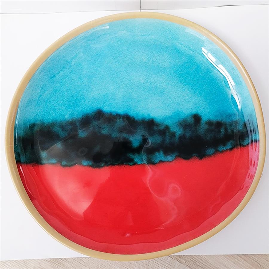 Plato de melamina estampado azul y rojo de 28cm