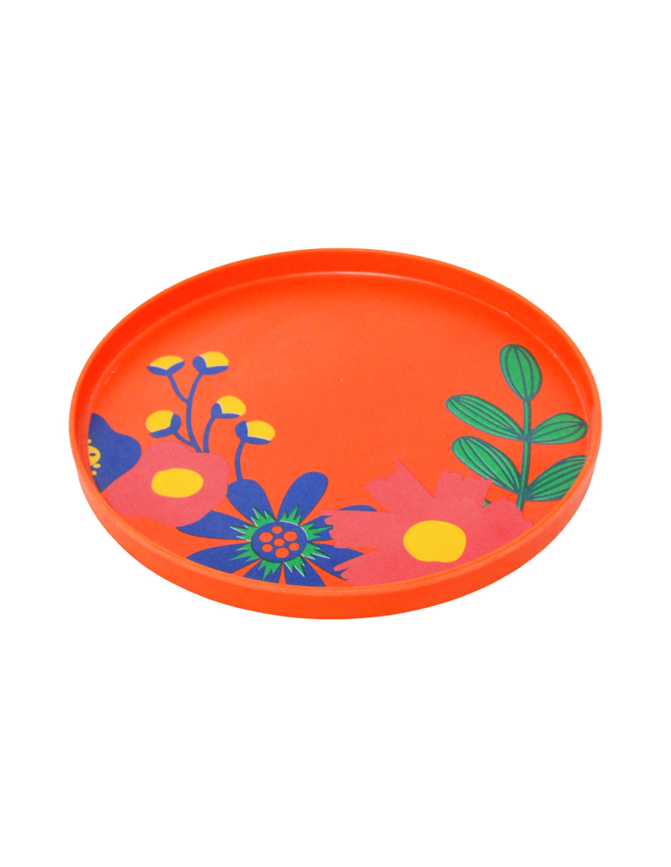 Plato de melamina naranja con colores de 20.5×20.5×1.8cm