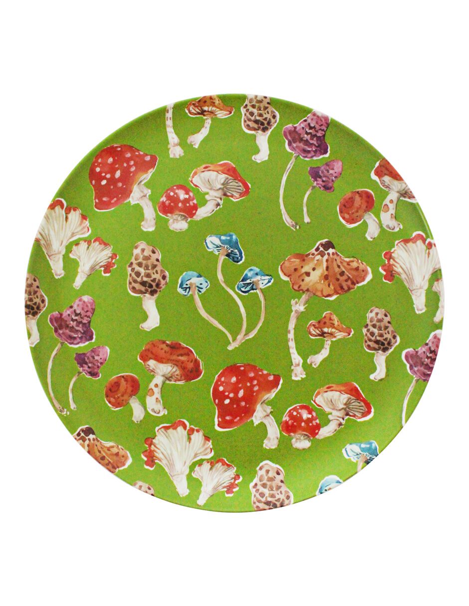Plato Verde Estampado Hongos