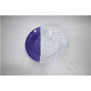 Sirve tus platillos con un toque moderno y alegre. Este plato de peltre morado con blanco y puntos es perfecto para tu mesa. Su diseño te hará sentir la alegría y la diversión. Mide 16x16x2.5cm.