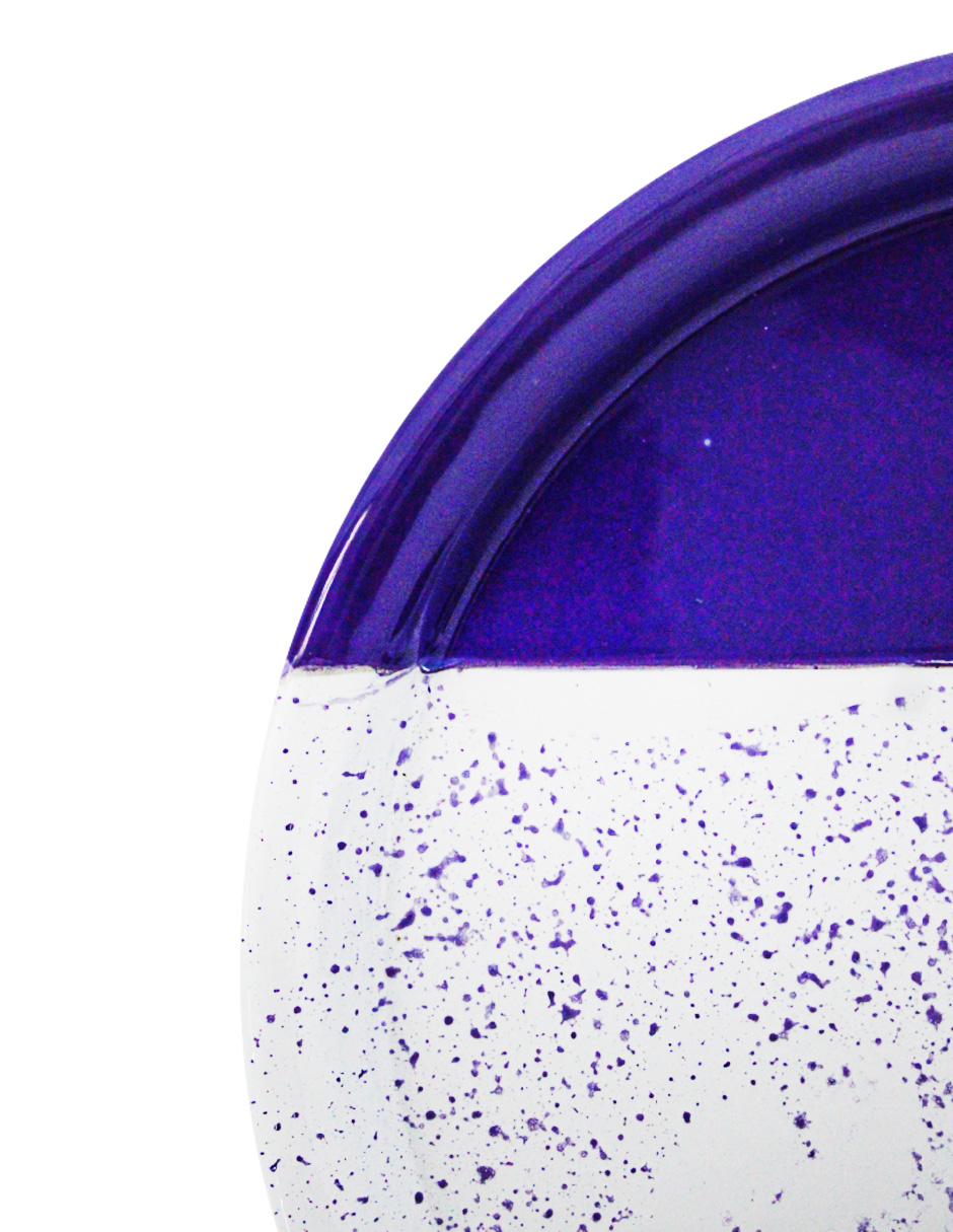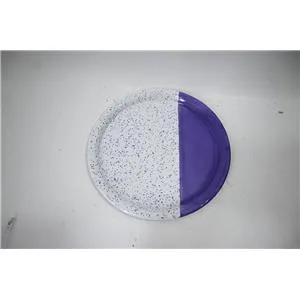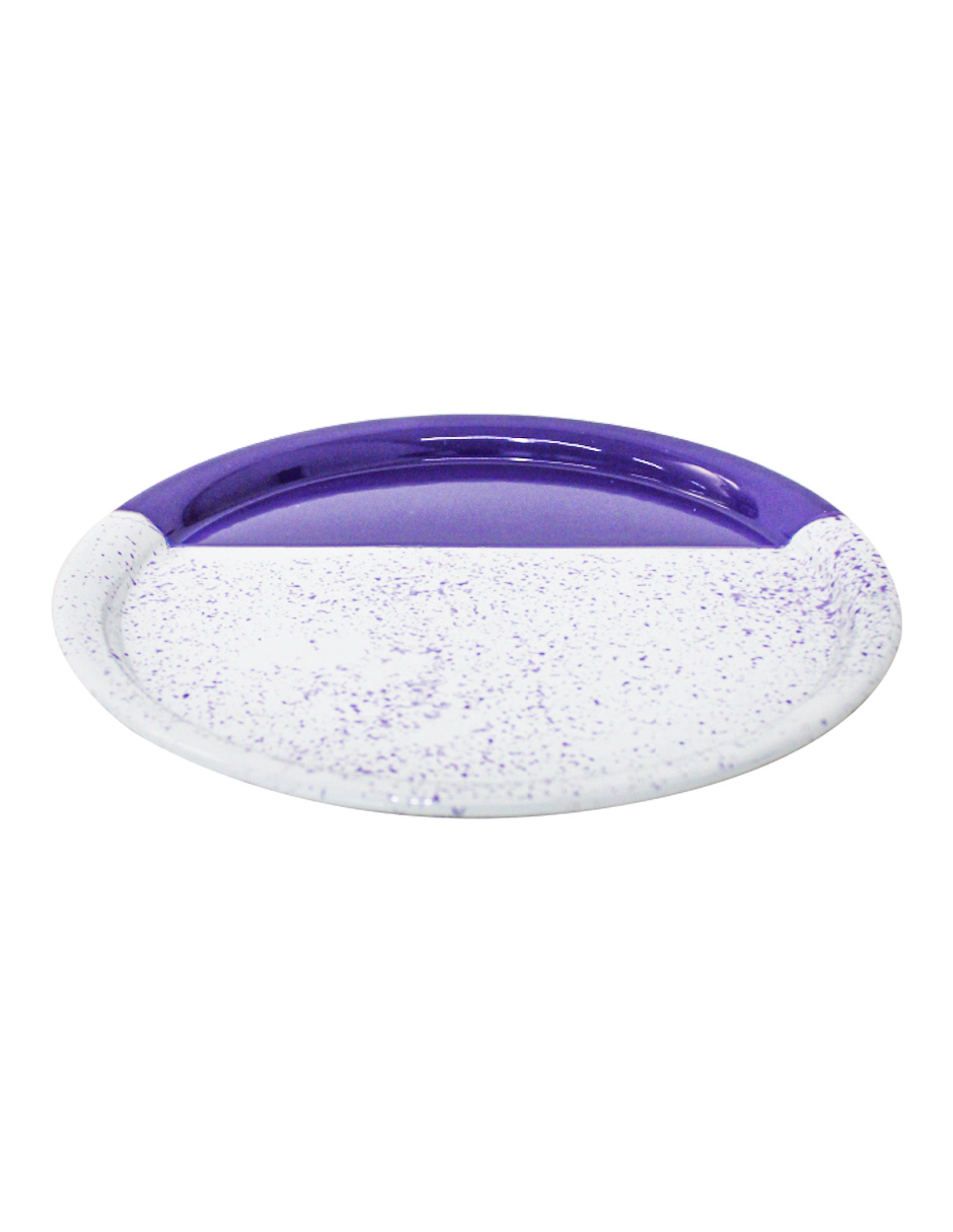Sirve tus platillos con un toque moderno y alegre. Este plato de peltre morado con blanco y puntos es perfecto para tu mesa. Su diseño te hará sentir la alegría y la diversión. Mide 26x26x1.5cm.
