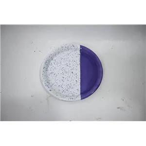 Sirve tus platillos con un toque moderno y alegre. Este plato de peltre morado con blanco y puntos es perfecto para tu mesa. Su diseño te hará sentir la alegría y la diversión. Mide 16x16x1.5cm.