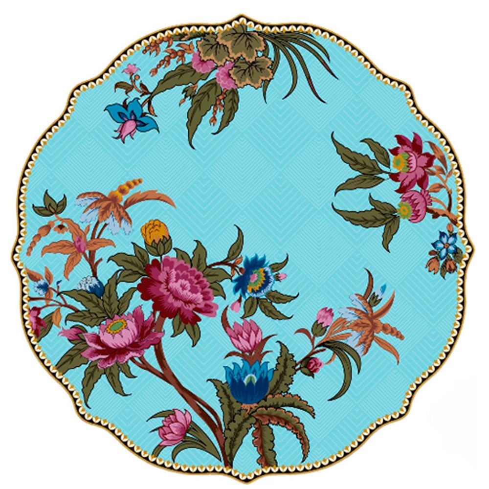Eleva tu mesa con la distinción y el lujo sereno de este majestuoso plato de porcelana, que destaca por su profundo color azul, un delicado diseño floral y un sofisticado borde dorado. Esta pieza evoca la elegancia clásica, la opulencia y el buen gusto, siendo ideal para realzar tus platillos principales con una distinción inigualable. Es el toque perfecto para crear una atmósfera sofisticada, memorable y de ensueño. Material: Porcelana. Medidas: 27 cm de diámetro.