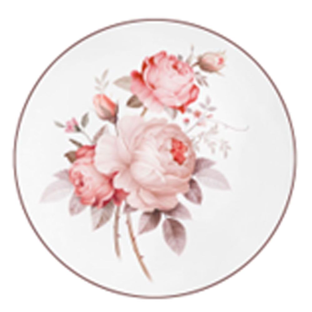 Infunde tu mesa con el romanticismo delicado y la sofisticación primaveral de este exquisito plato de porcelana, que destaca por un suave y elegante diseño de flores rosas sobre un fondo blanco. Esta pieza evoca la ternura, la calma y el buen gusto, siendo ideal para servir postres o aperitivos con distinción. Es el toque perfecto para crear una atmósfera elegante, acogedora y llena de armonía. Material: Porcelana. Medidas: 19 cm de diámetro.