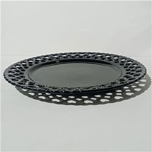 El Plato Negro Orilla Corazón Calada es la pieza maestra para quien busca una estética dramática, detalles románticos sutiles y una presencia visual imponente en su servicio de mesa. Este objeto ofrece una sofisticación artesanal incomparable para cualquier cena de gala, evento temático o como plato base de lujo en tu espacio de convivencia. Su sola presencia ayuda a elevar el carácter de tu vajilla de manera inmediata. Lo logra mediante su diseño detallado de vidrio negro sólido con un acabado brillante, coronado por un borde calado que forma una cadena de corazones entrelazados, lo que evoca la elegancia del diseño neobarroco en la categoría de Liquidación.