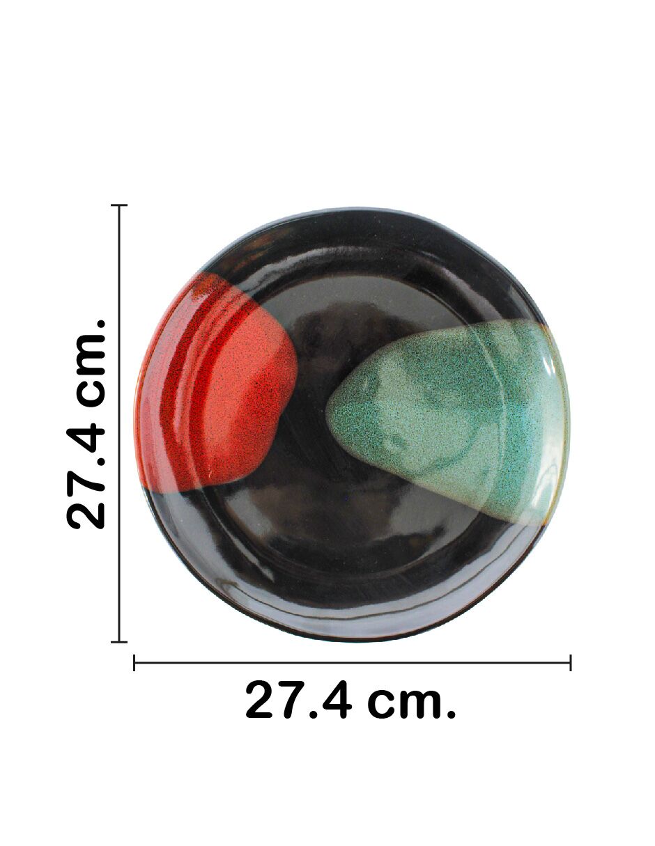 Este majestuoso plato de servicio irradia elegancia, diseño contemporáneo y una profundidad sofisticada. Su intenso color negro y su diseño texturizado crean un efecto visual dinámico, elevando instantáneamente cualquier platillo. Es perfecto para servir platos fuertes con un estilo audaz y minimalista, haciendo que los alimentos resalten. Material: Porcelana. Medidas: 27.4 x 27.4 x 2.5 cm.