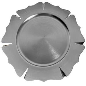 Este encantador plato de presentación irradia elegancia, brillo y un toque romántico. Su acabado plateado está enmarcado por un delicado diseño de flor en las orillas. Fabricado en plástico, es la base perfecta para bodas y eventos que buscan sofisticación. Material: Plástico. Medidas: 33 x 33 x 2 cm.