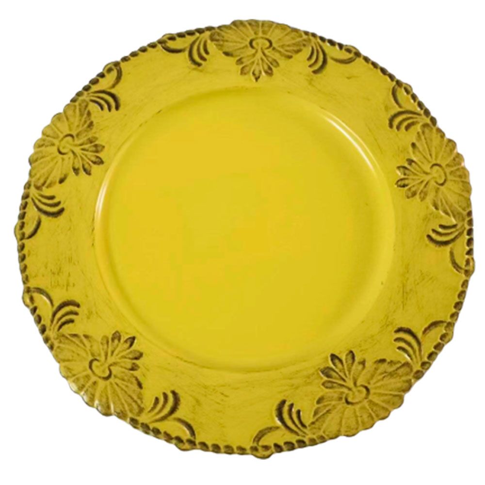 Este distinguido plato de presentación irradia alegría, diseño y una sofisticación festiva. Su color amarillo y un diseño sutil en las orillas ofrecen una base detallada y vibrante. Fabricado en plástico, es la base perfecta para cualquier vajilla y decoración que busque resaltar. Material: Plástico. Medidas: 33 x 33 x 2 cm.