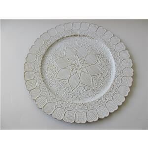 Con un acabado blanco matizado y un elegante diseño de flores, este plato de presentación de plástico es ideal para quienes buscan un estilo clásico y refinado para su mesa. Mide 33x33x2cm.