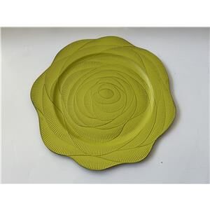 Plato de presentación de plástico amarillo mate con negro diseño flor de rosa de 33x33x2 cm