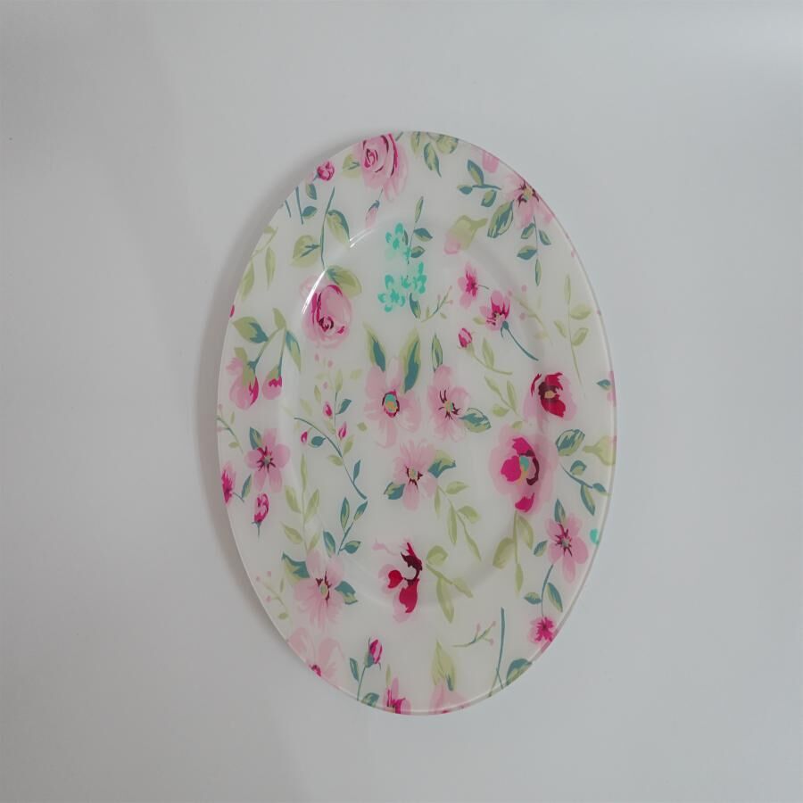 Plato de presentación de plastico blanco diseño flores rosas de 33x33x2cm