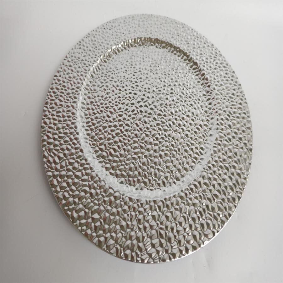 Eleva el arte de tu mesa y la sofisticación moderna de tus cenas con este distinguido plato base o de presentación. Su acabado plateado brillante se embellece con una elegante textura martillada, creando un acento de máximo lujo y distinción para cualquier evento formal o reunión especial. Es la base perfecta para inyectar brillo, glamour y un toque contemporáneo a tus vajillas, destacando por su acabado único. Material: Plástico. Medidas: 40 x 40 x 2 cm.