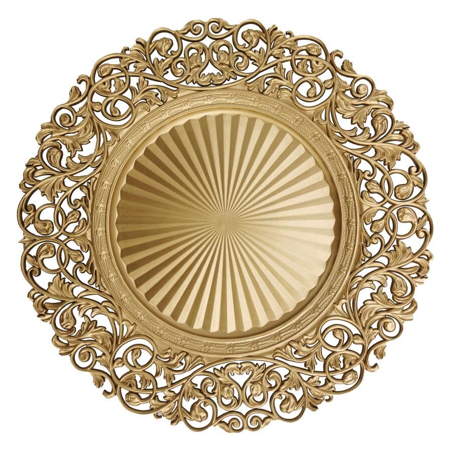 Este majestuoso plato de presentación irradia lujo, diseño dinámico y opulencia. Su acabado dorado y el patrón de guías en la orilla crean una estética vibrante y sofisticada. Fabricado en plástico, es la base ideal para celebraciones de gala y eventos memorables. Material: Plástico. Medidas: 33 x 33 x 2 cm.