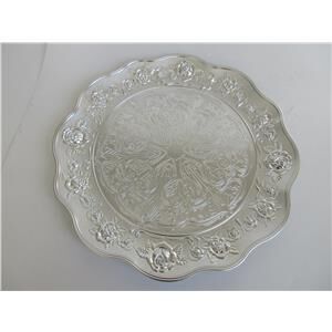 Plato de presentación de plástico plateado diseño flores ondulado de 32.5×32.5×2 cm