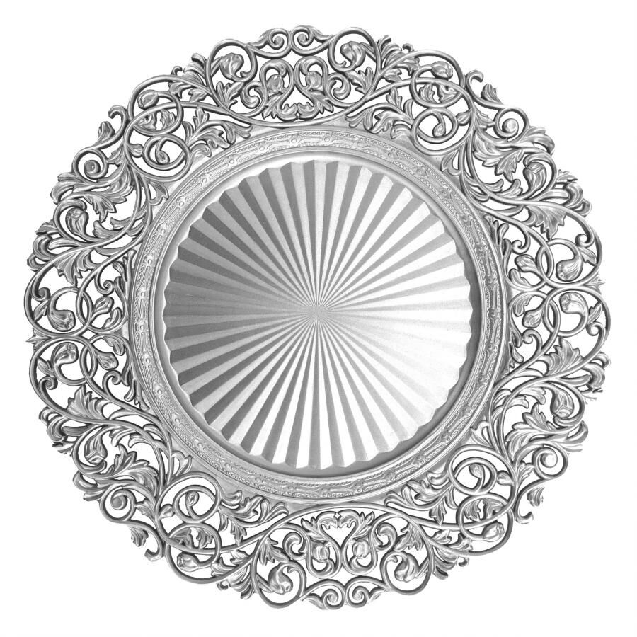 Este distinguido plato de presentación irradia elegancia, diseño moderno y distinción. Su acabado plateado y el patrón de guías en la orilla crean una estética sofisticada y contemporánea. Fabricado en plástico, es la base ideal para ambientes contemporáneos y estilizados. Material: Plástico. Medidas: 33 x 33 x 2 cm.