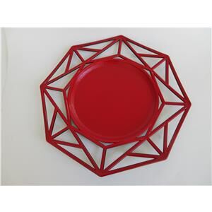 Plato de presentación de plástico rojo diseño geométrico de 33x33x2 cm