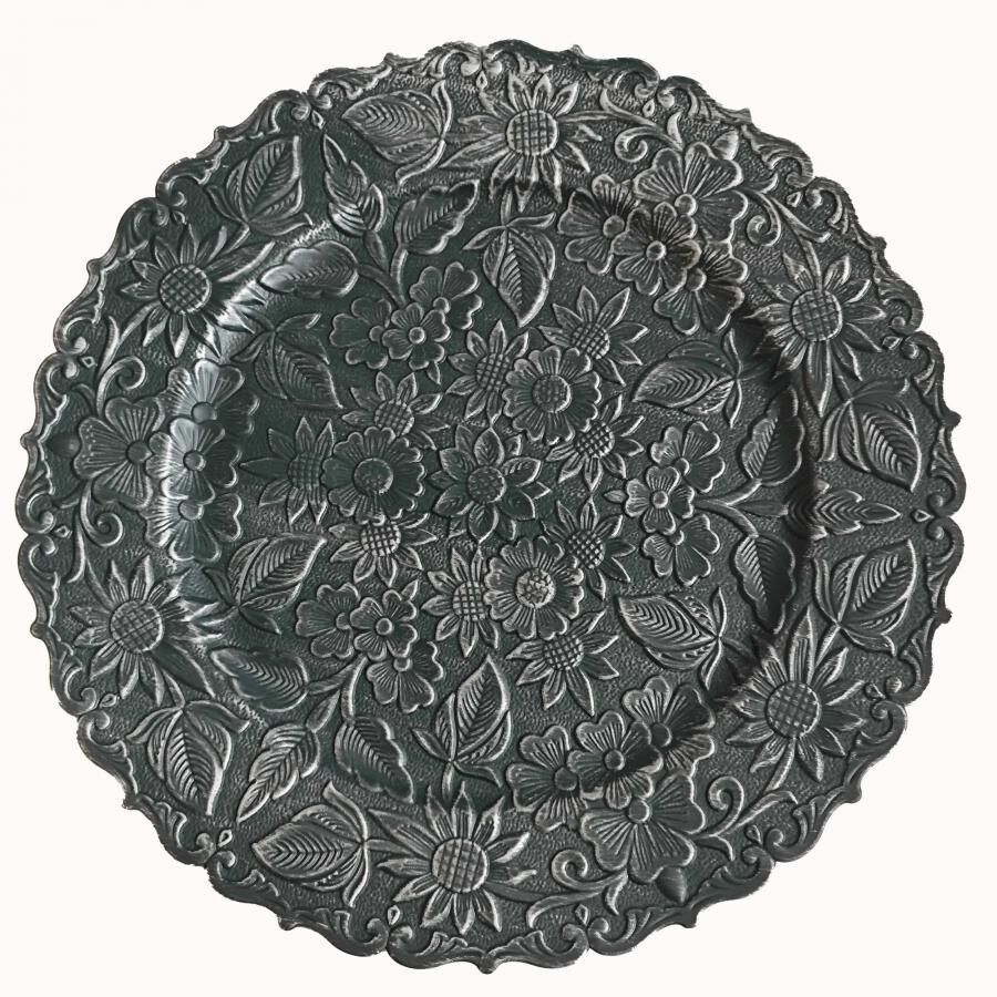 Plato de presentación de plástico verde diseño flores de 33x33x1.5cm