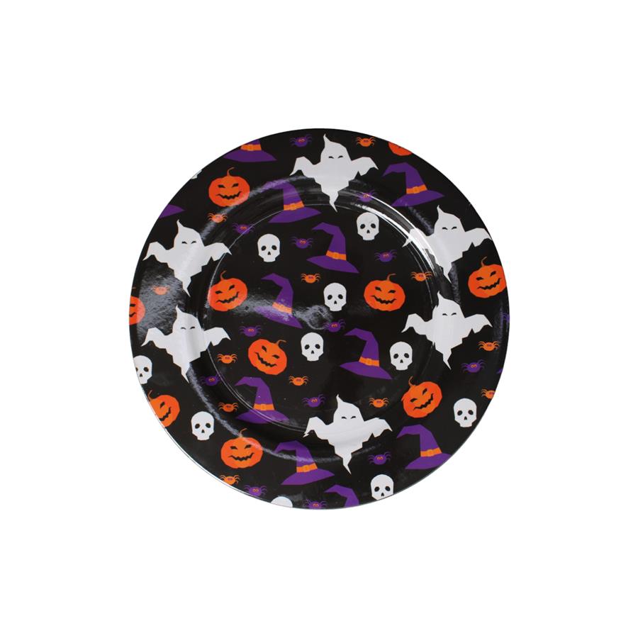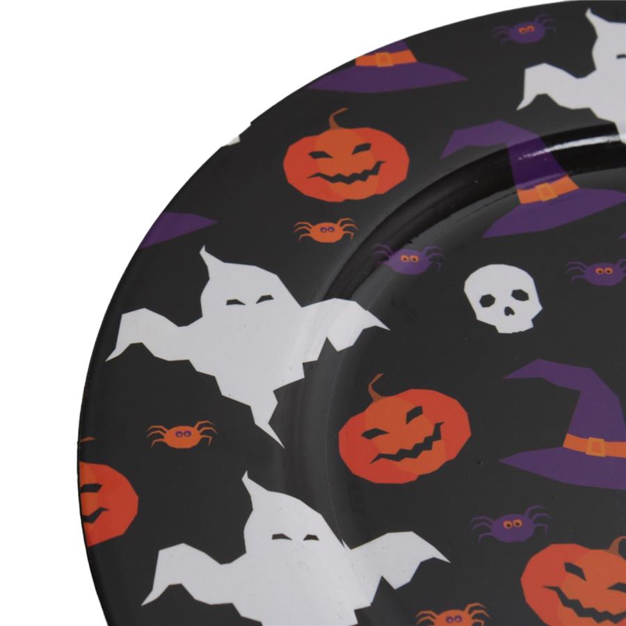 Transforma tu mesa en un escenario de misterio y diversión escalofriante con este dramático plato de presentación temático de Noche de Brujas. Su diseño oscuro y festivo es ideal para realzar tus platillos de temporada, inyectando una sensación de magia, intriga y espíritu celebratorio. Es la pieza perfecta para crear una atmósfera de Halloween inolvidable. Material: Plástico. Medidas: 33 cm de diámetro.