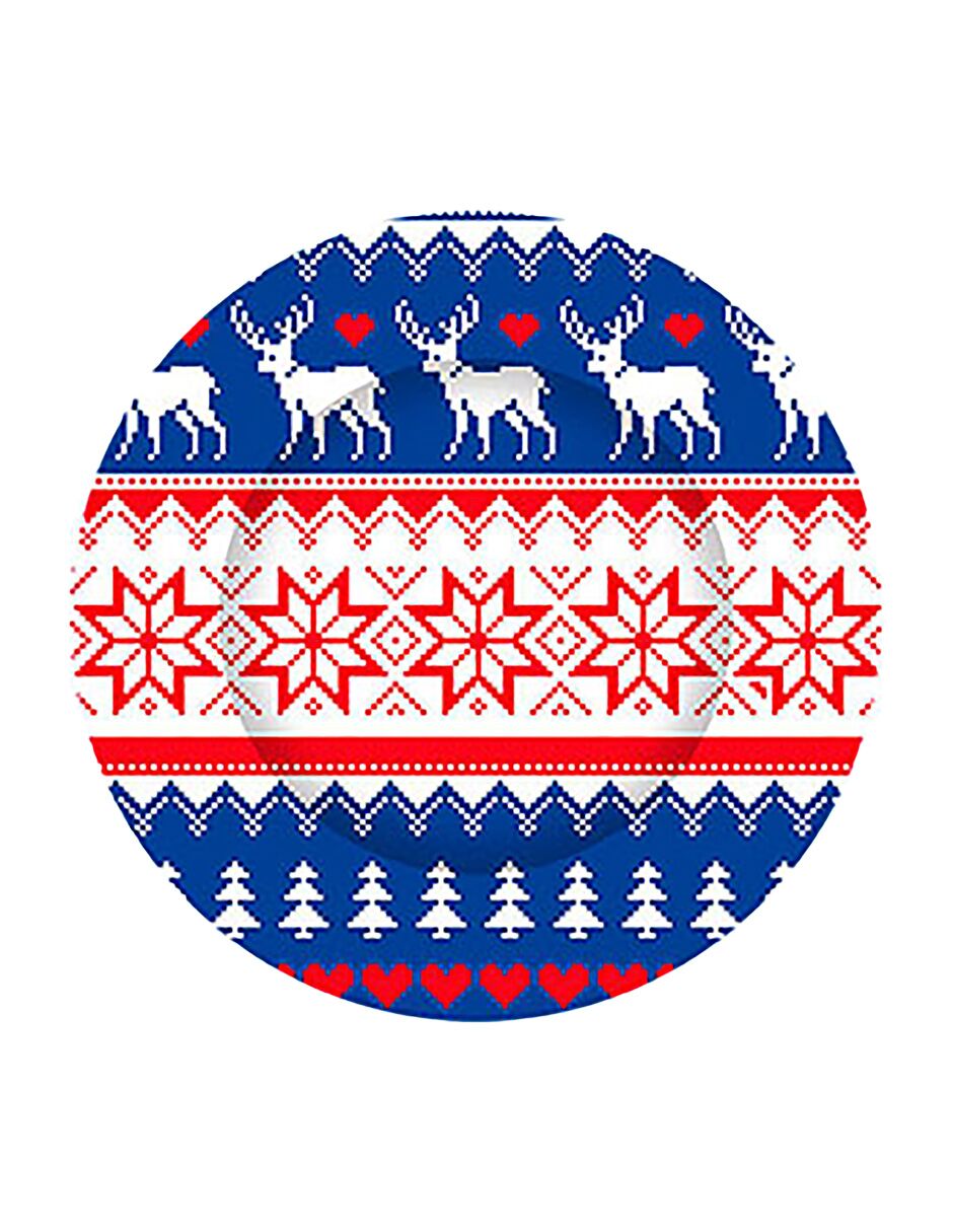 Plato de presentación diseño renos blancos y estrella rojas con azul de 33cm