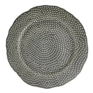 Este plato de presentación gris tiene una textura de grumos. Su color neutro y su acabado original lo hacen perfecto para una mesa moderna y minimalista. Mide 33cm.