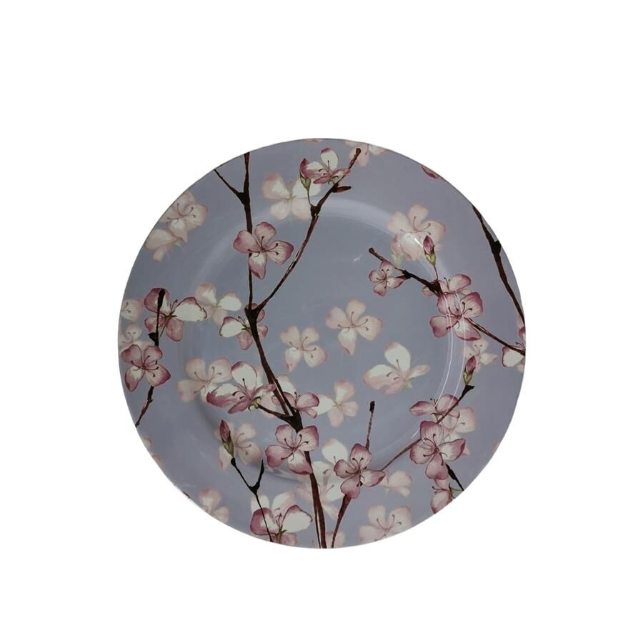 Infunde tu mesa con el romanticismo etéreo y la delicadeza oriental de este encantador plato de presentación, que luce un suave diseño de flor de cerezo sobre un fondo lila. Su diseño floral y apacible es ideal para realzar tus platillos, inyectando una sensación de calma, dulzura y la belleza efímera de la primavera. Es el toque perfecto para crear una atmósfera elegante y poética. Material: Plástico. Medidas: 33 cm de diámetro.