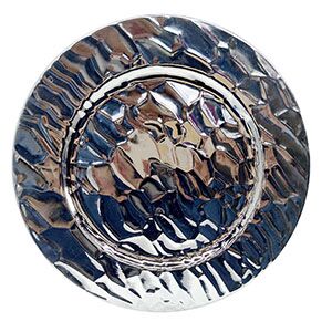 Este artístico plato de presentación irradia diseño de vanguardia y una textura intrigante. Su acabado plateado y el efecto calado (craquelado) le confieren un aspecto moderno y único. Fabricado en plástico, es la base ideal para un ambiente contemporáneo y lleno de estilo. Material: Plástico. Medidas: 33 cm (diámetro).