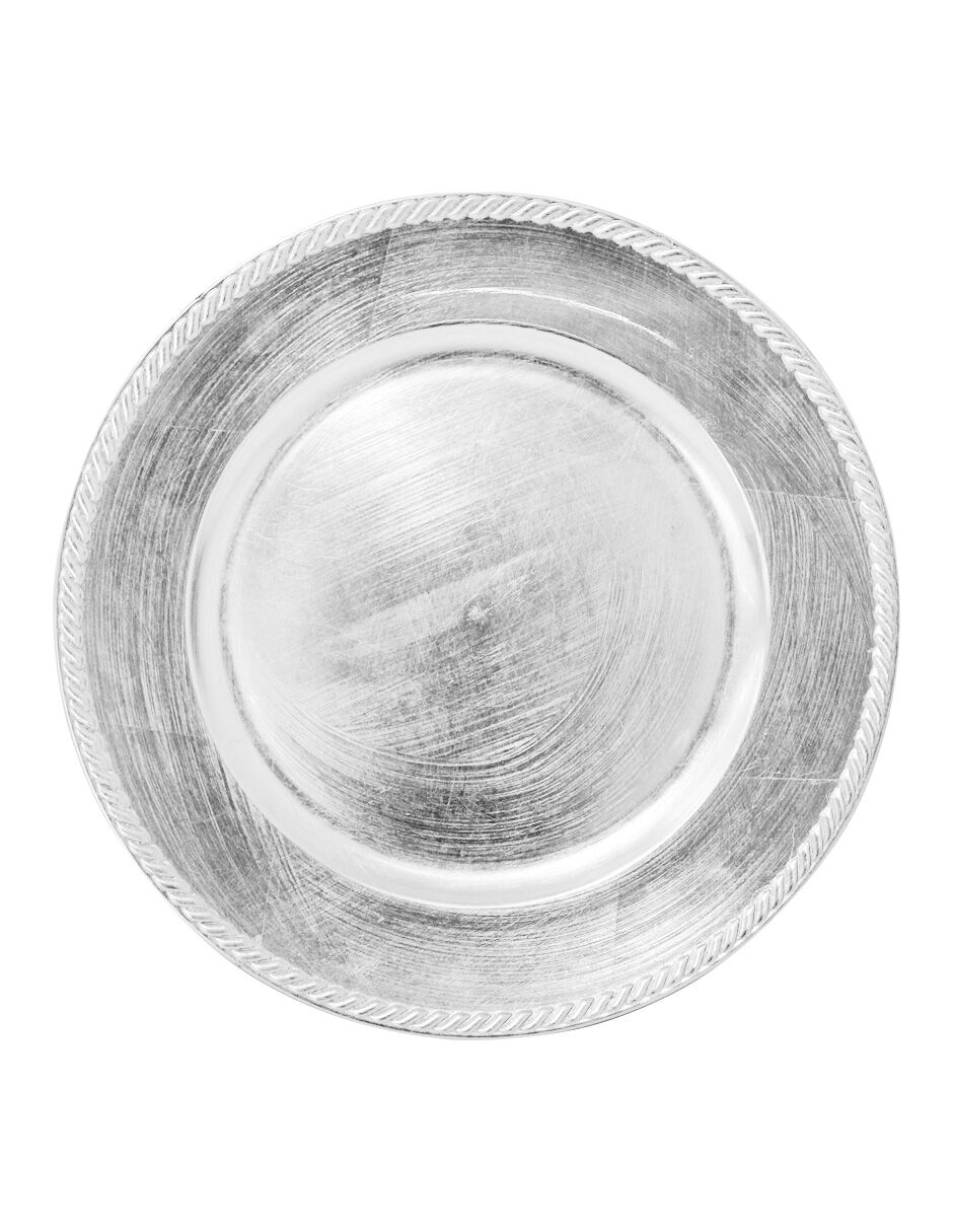 Plato de presentación plateado con orilla diseño trenzado de 33x33x2cm