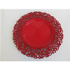 Este plato de presentación rojo de plástico con un diseño de guías es una pieza llamativa para tu mesa. Su color intenso y patrón sutil añaden un toque de dinamismo y elegancia. Mide 34x34x2cm.
