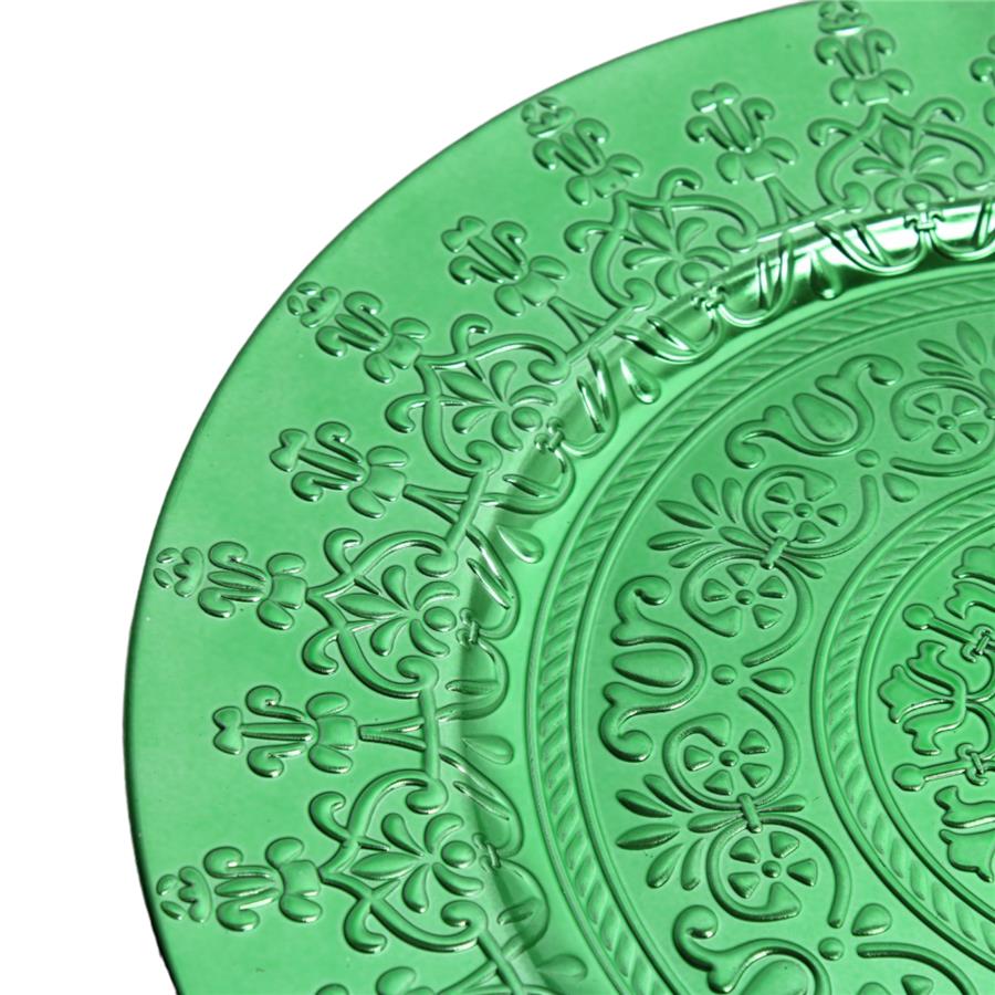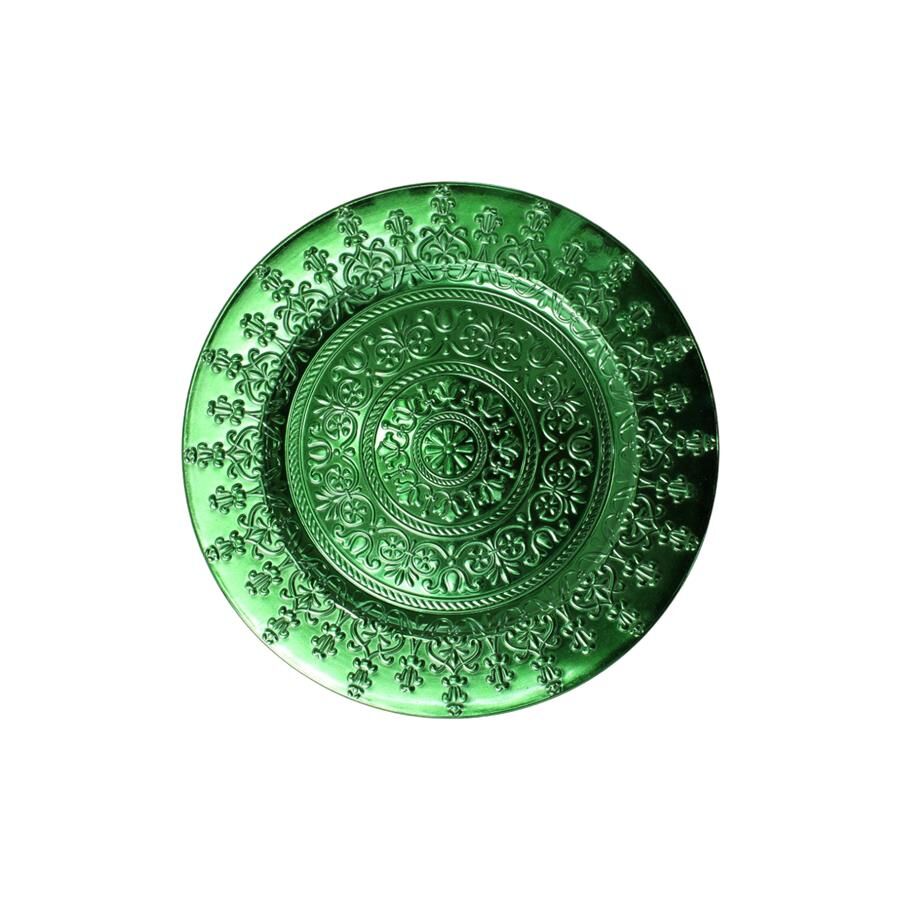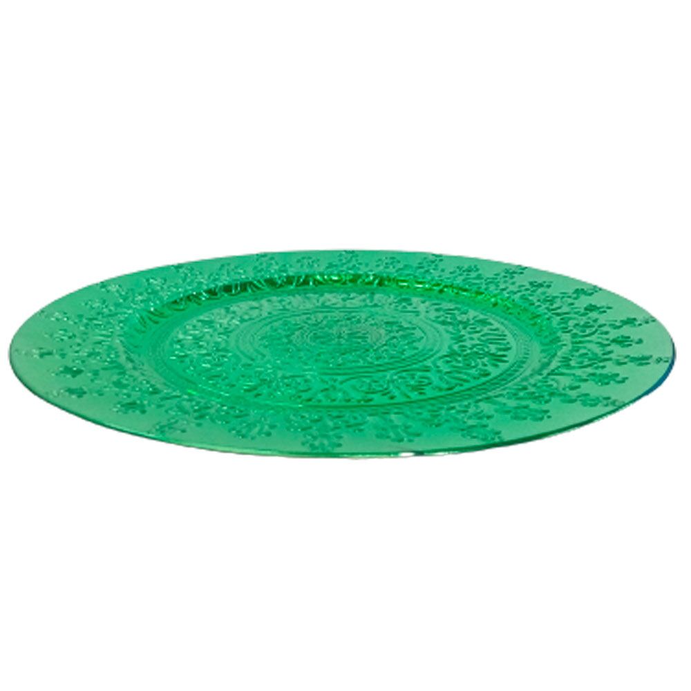 Este fresco plato de presentación irradia vitalidad, diseño orgánico y una rica textura. Su color verde y el diseño grabado en la superficie crean una estética serena y natural. Fabricado en plástico, es la base ideal para ambientes relajados y modernos. Material: Plástico. Medidas: 33 cm (diámetro).