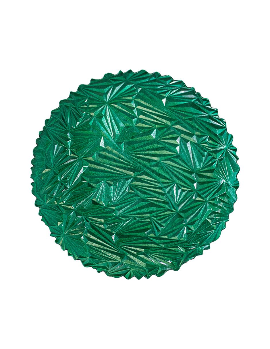 Este exquisito plato de presentación irradia lujo, diseño y vanguardia. Su color verde esmeralda y el grabado geométrico de picos crean una textura rica y moderna. Fabricado en plástico, es la base ideal para un ambiente sofisticado y de alto diseño. Material: Plástico. Medidas: 33 x 33 x 2 cm.