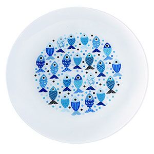 Plato de vidrio diseño de peces al centro de 30x20cm