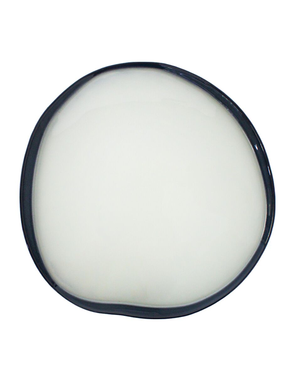 Aporta un toque de serenidad sofisticada a tu mesa con este distinguido plato de vidrio en tono verde pálido, realzado por una elegante orilla azul marino. Su diseño bicolor y minimalista crea un contraste visual que resalta la presentación de tus platillos, inyectando un estilo moderno y calmado. Es la pieza perfecta para quienes buscan combinar sencillez y distinción. Material: Vidrio. Medidas: 32 cm de diámetro.