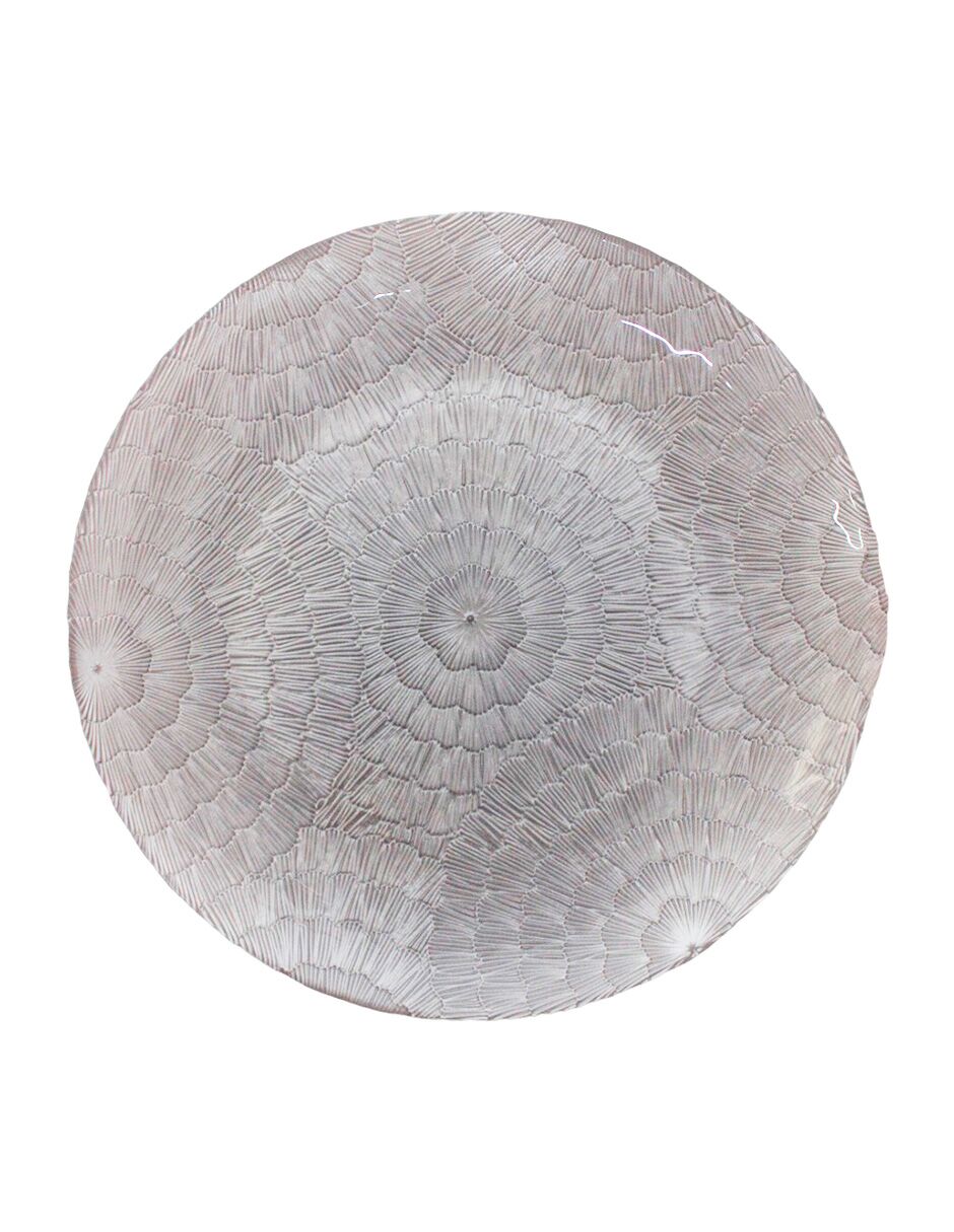 Introduce una elegancia sobria y moderna a tu mesa con este sofisticado plato de vidrio texturizado en un atemporal color gris. Su textura distintiva y tono neutro lo convierten en una pieza versátil que aporta profundidad y un toque de diseño minimalista a cualquier presentación. Es la elección perfecta para quienes valoran la distinción tranquila y el buen gusto contemporáneo. Material: Vidrio. Medidas: 32 cm de diámetro.
