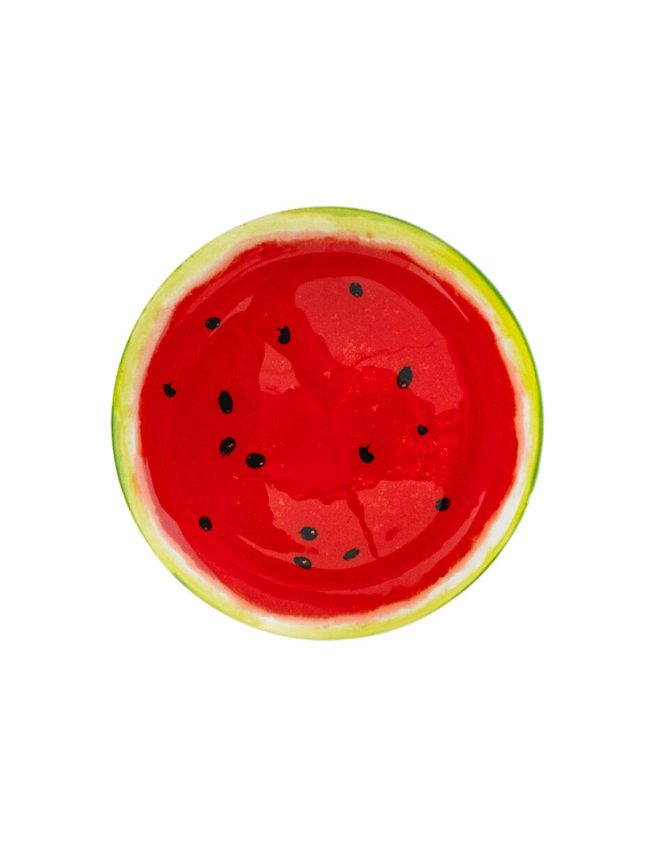 Captura la esencia refrescante del verano en tu mesa con este vibrante plato de vidrio redondo con diseño de sandía roja. Sus colores vivos y realistas lo convierten en el protagonista, siendo ideal para servir ensaladas de frutas, postres helados o cualquier platillo que celebre la alegría de la temporada. Una pieza que irradia frescura y diversión en tus reuniones. Material: Vidrio. Medidas: 25 x 25 x 1.5 cm.