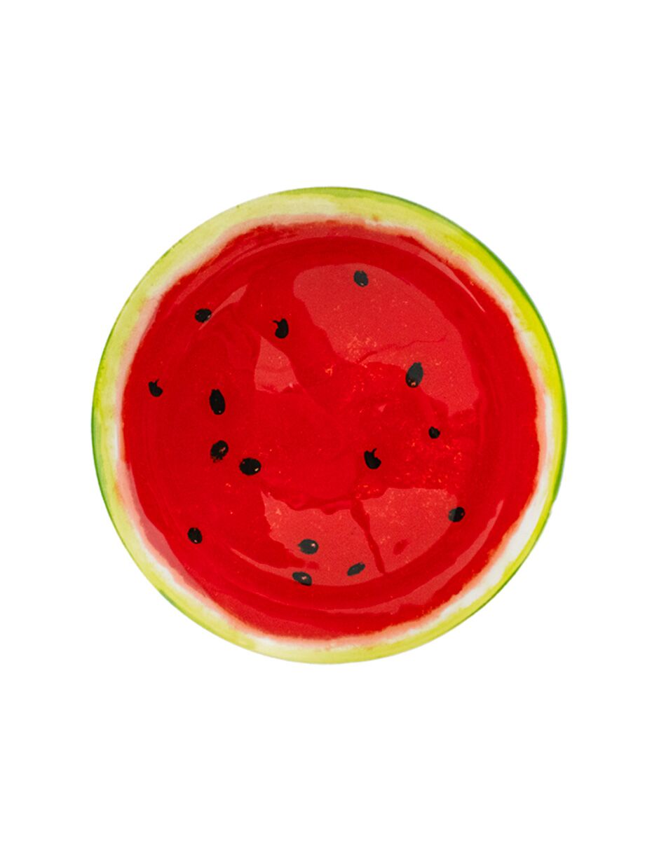 Captura la esencia refrescante del verano en tu mesa con este vibrante plato de vidrio redondo con diseño de sandía roja. Sus colores vivos y realistas lo convierten en el protagonista, siendo ideal para servir ensaladas de frutas, postres helados o cualquier platillo que celebre la alegría de la temporada. Una pieza que irradia frescura y diversión en tus reuniones. Material: Vidrio. Medidas: 30 x 30 x 2.2 cm.
