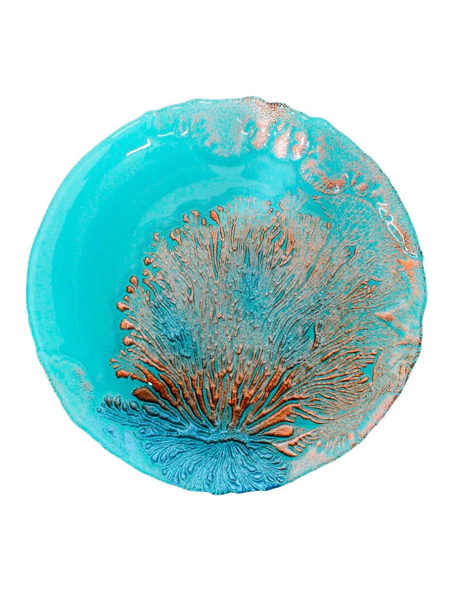 Plato de vidrio turquesa con marrón diseño arrecife marino de 32cm