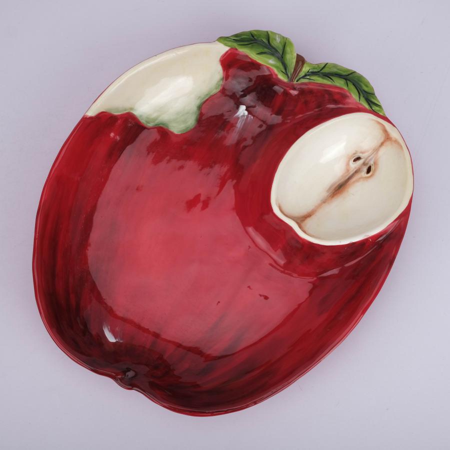 Este plato de diseño irradia alegría, funcionalidad y creatividad para tus reuniones. Su forma de manzana ofrece una amplia superficie para snacks y cuenta con un espacio dedicado para servir aderezos o salsas de forma organizada y atractiva. Fabricado en porcelana resistente, combina un diseño lúdico con la durabilidad necesaria para el uso constante. Medidas: 33.5 x 28.5 x 4.5 cm.