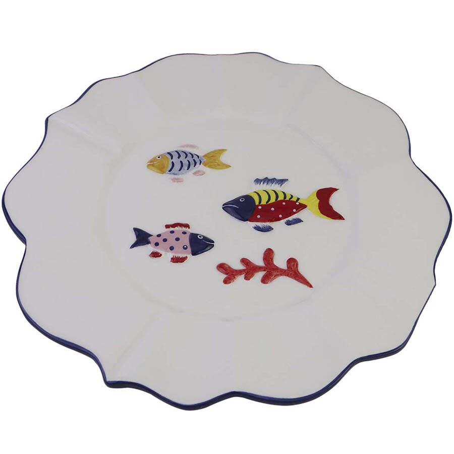 También transmite una sensación de pulcritud y suavidad a través de su acabado esmaltado brillante y su forma festoneada, que captura la atención al aportar un toque de autoridad decorativa a cualquier cena familiar mediante una apariencia que celebra el diseño mediterráneo artesanal. Su apariencia refinada invita a la hospitalidad mientras disfrutas de una pieza de alto impacto visual y equilibrio entre su durabilidad material y su ligereza estética. Funciona perfectamente en cualquier circunstancia de estilo Costero, Cottage o Juvenil, actuando como el escenario ideal para resaltar aperitivos frescos o postres sobre un fondo artístico y funcional. De hecho, este elemento permite que tu zona de servicio resalte con mucha fuerza hoy mismo de forma imponente. Además, la estética de este plato peces orilla azul simboliza la vitalidad y la sencillez elegante en la armonización de accesorios para el hogar.
