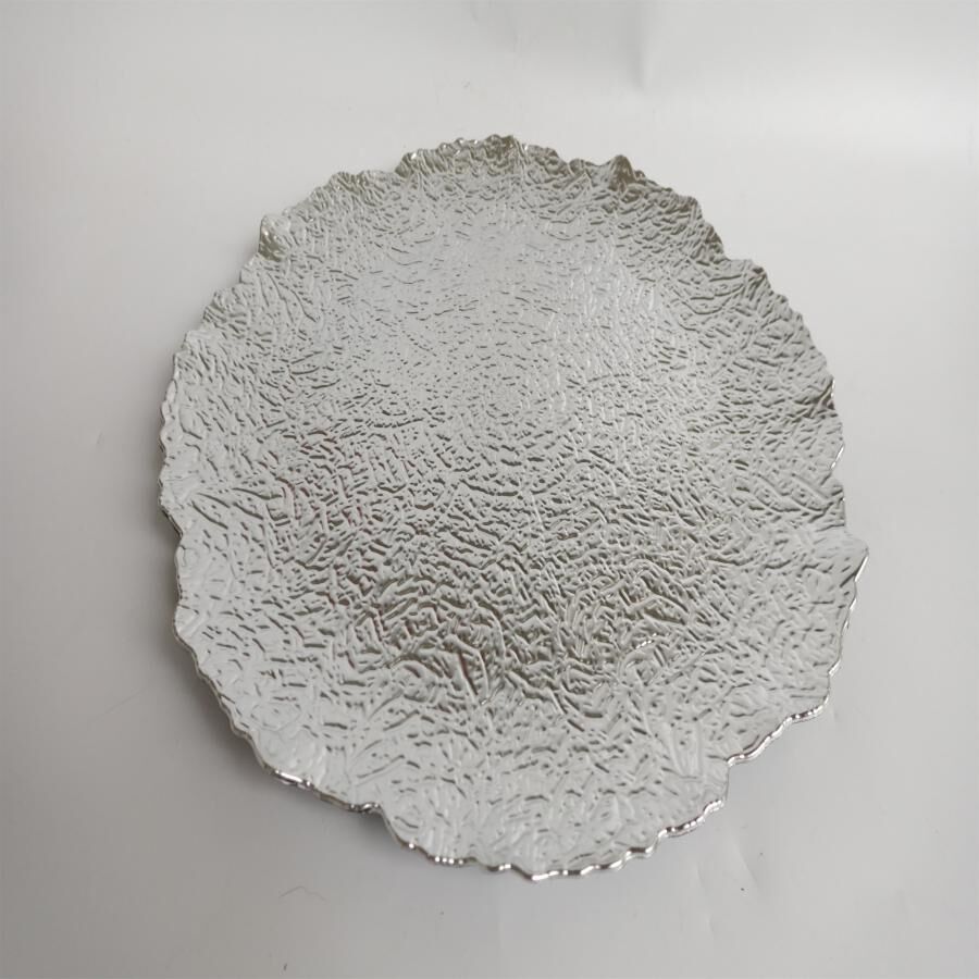 El Plato Presentación Craquelado Plateado irradia elegancia instantánea y lujo en la mesa. Este Plato Presentación Craquelado Plateado no solo es funcional, sino una pieza que infunde sofisticación y brillo en cualquier cena. Siente el impacto de su diseño craquelado, pues su acabado Plateado es perfecto para realzar tu vajilla en eventos especiales, símbolo de buen gusto y recepciones impecables.