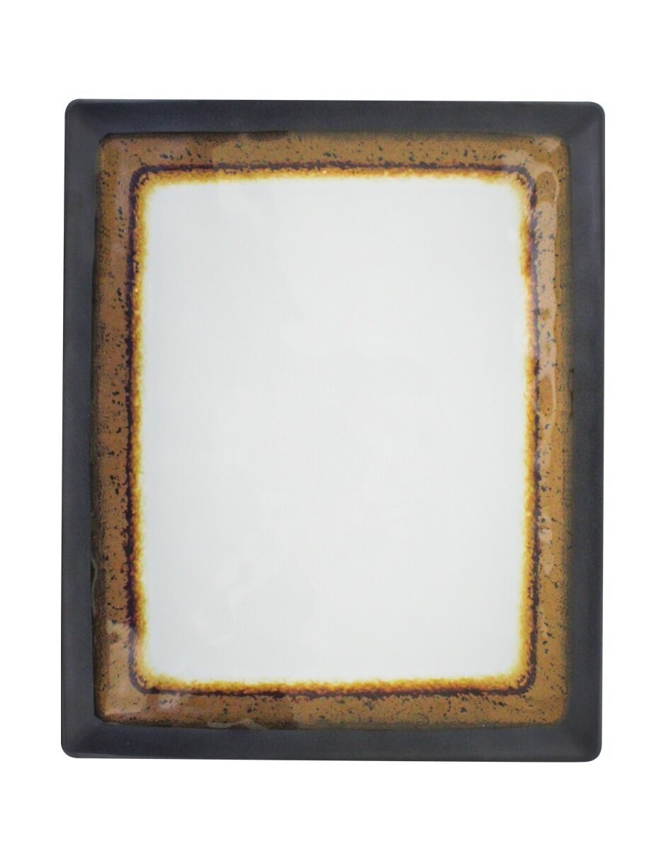 Plato rectangular de melamina blanco con café de 32×26.5cm