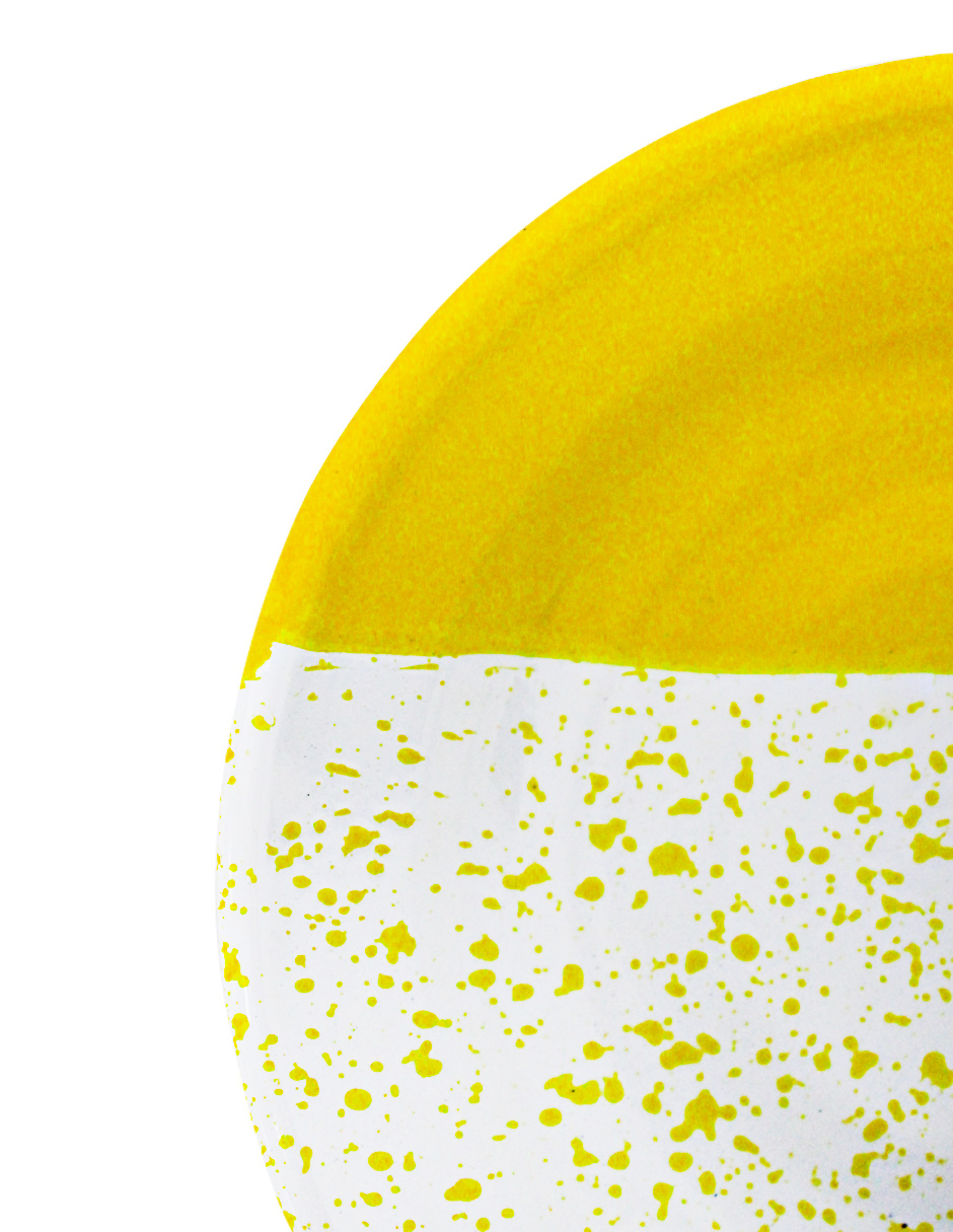 Sirve tu sopa con un toque moderno y alegre. Este plato sopero de peltre amarillo con blanco y puntos es perfecto para tu mesa. Su diseño te hará sentir la alegría y la diversión. Mide 20x20x3cm.